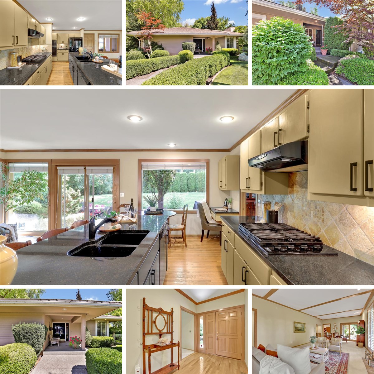 Exceptional Rancher in coveted Manito Place luxury gated community on Spokane's upper South Hill. Enjoy the private garden views from your huge picture windows in the spacious family room off the Kitchen w/breakfast area,pantry and eating bar. The formal living room has a stunning floor to ceiling stone gas fireplace,outdoor access, formal dining. Timeless custom blonde woodwork/trims throughout. Generous Primary with two walk in closets! The main floor living areas take advantage of the setting bringing the outdoors in with several picture windows! The lower level has a fantastic bright rec room, and two bedroom suites-each with their own private bath perfect for guests or multi-generational living.This lifestyle is the dream you have waited for! Golf, nearby trails for hiking, close to parks, and a very private lot, with spacious indoor/outdoor living.